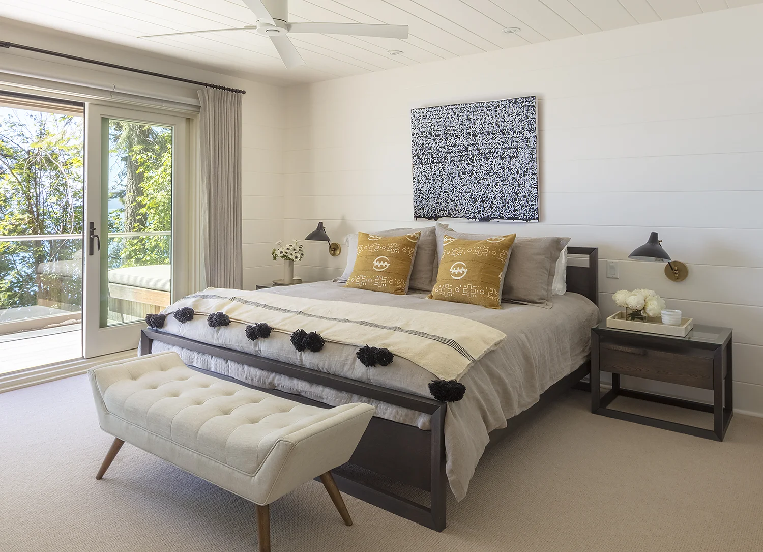 So excited to see one of my new paintings, "Memories in White on Black", oil paint on canvas 36" x 36", installed in a residential design space, beautiful master bedroom!