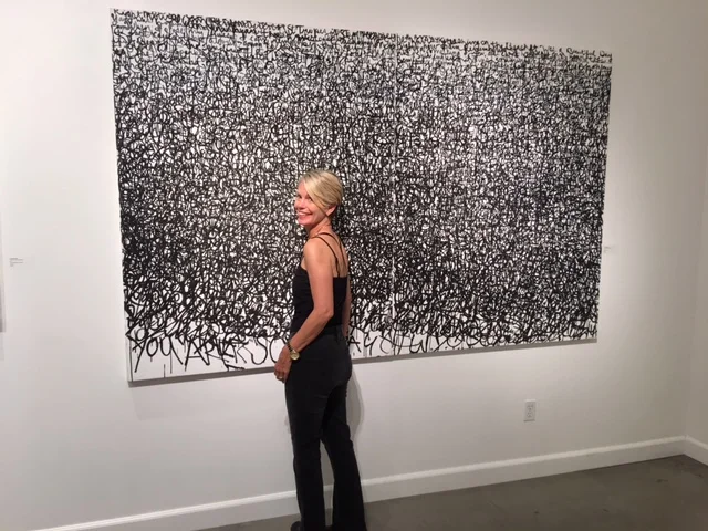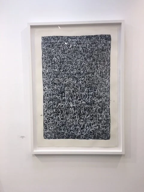 "The focus of the show is on black and white contrast, and on the power, tension, and drama, that can be created when the two come together. Another theme that runs through this show is repetition and accumulation. In other words, what magic happens when a small manual gesture (looping a string around an object, laying down a dot of paint, or writing a word) is repeated again and again until something much larger begins to exist in the world? How can an accumulation of small gestures create something much more powerful than the sum of its parts? And howdoes a work of art hold a history of the body, of the movements of its maker, and of time?" -Slate Art